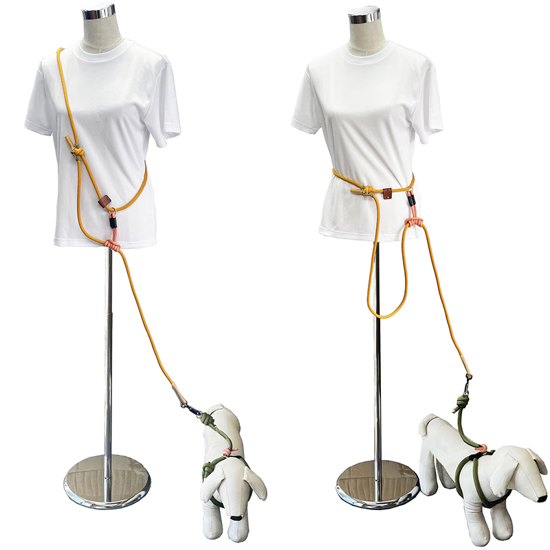 ・大きなワンちゃん用のリードです ・丈夫な10.5mmの登山用ロープを使用しています。 ・ワンちゃんの特徴や性格、お散歩の状況に合わせて色々な使い方ができます。 ・肩掛けリード、腰巻リード、手持ちリードの3種類を簡単な調節で使い分けが可能。 ・リードの長さも飼い主さんがお好きな長さに調節できます。 ・ロープや金属等は登山で使用されているものを採用しているので強度面も安心です。 ・色は【ピンク①】・【ブラウン】・新色【ブラック】・新色【ピンク②】・新色【オレンジ】の5色からお選びください。 |